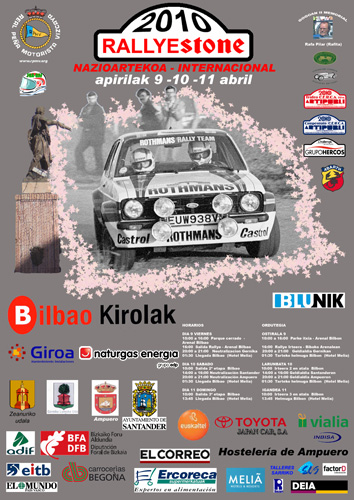 Faltan menos de dos meses para que se ponga en marcha una nueva edición del Rallye Internacional “Rallyestone 2010” de Clásicos Deportivos, prueba que se encargará de sacar adelante la Real Peña Motorista Vizcaya (RPMV), y que se celebrará los días 9, 10 y 11 de abril del 2010. Esta nueva edición tendrá carácter internacional, siendo valedera para los Campeonatos C.E.R.C.A, FEVA y Artipubli 2010, y para la Challenge Grupo Hercos “Sin Instrumentos” 2010, contando como patrocinadores con el Excmo. Ayuntamiento de Bilbao, Bilbao Kirolak, la Diputación Foral de Vizcaya, Naturgas, Giroa, Ercoreca, Vialia-Adif, Excmo. Ayuntamiento de Gernika, Excmo. Ayuntamiento de Zeanuri, Inbisa, SMP, Blunik, Hotel Meliá y Talleres Sarriko, entre otros.